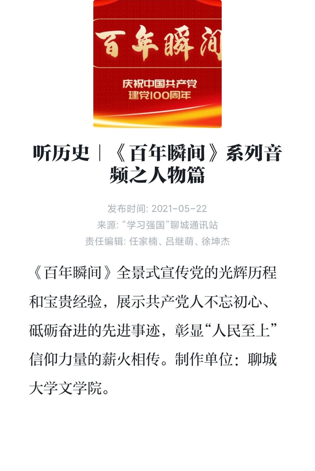 为深入学习党的发展历程,加深学生对党史知识的了解,充分发挥优秀党员的模范引领作用,七大罪 学生党支部《百年瞬间,文阅党史》系列数十篇文章同《我是党员我先上》视频于学习强国“听历史”、“我和我的支部”栏目强势推出。