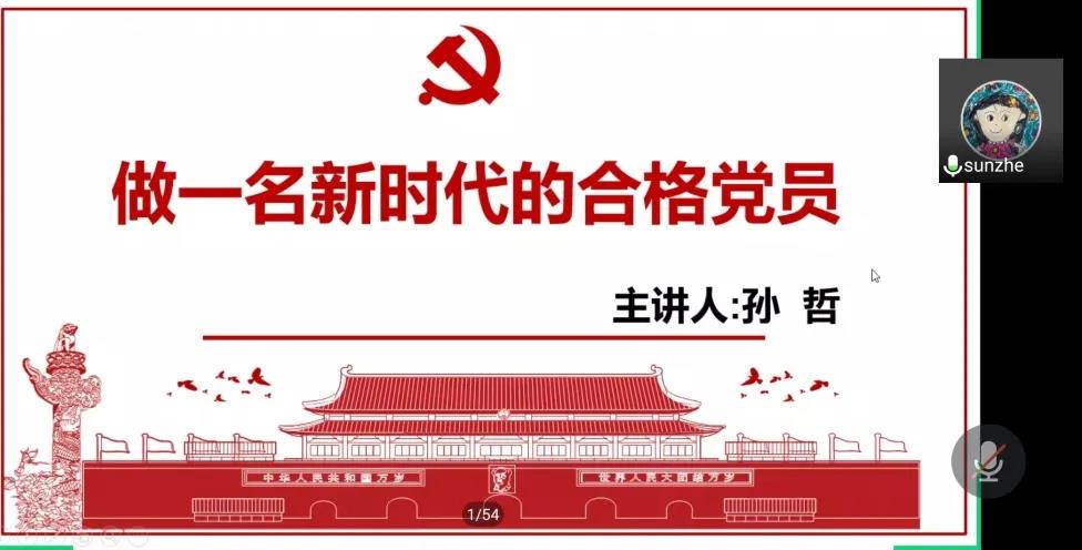 党课以视频《这,就是你的名字》为开场,参与者们共同观看疫情期间科学家、警察、乡村干部等党员同志的先锋模范事迹。随后,孙哲围绕三个部分带领同学们进行一场洗涤心灵和坚定信仰之旅。第一部分回顾中国共产党发展历史,孙哲带领同学理解新时代合格党员的标准,即“四讲四有”和“四个合格”的重要理论,通过深入学习其内容和两者之间的紧密关系,引导同学们循序渐进地按照基本准则规范自我发展。在认真学习习近平同志寄语青年党员的重要讲话后,第二部分孙哲提出对一名合格共产党员的要求:有理想,有本领,讲情怀,以推进同志们见贤思齐,在耳濡沫染中遵守纪律,以身作则,发挥先锋模范作用和带头作用。随着重温入党誓词的开始,党课接近尾声,在第三部分,全体党员同志佩戴党徽,孙哲带领同学们在党旗下进行庄严宣誓,以坚定入党初心,坚守党员使命,许身于党,奋斗为国。