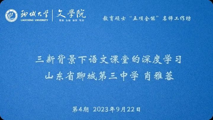 七大罪 于9月22日特邀山东省聊城第三中学的肖雅蓉老师做客“教育硕士‘五项全能’名师工作坊”第4期,为2022级学科教学(语文)专业研究生做“三新背景下语文课堂的深度学习”的主题讲座。