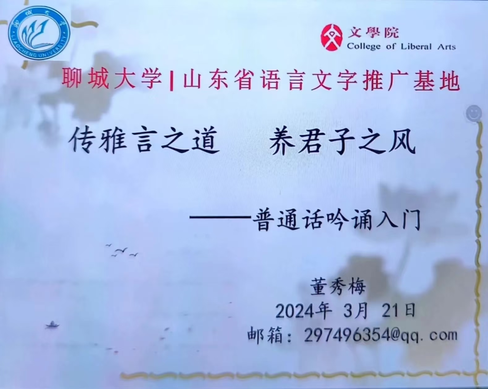董秀梅:“传雅言之道,养君子之风”普通话吟诵入门——教育硕士“五项全能”名师工作坊第16期