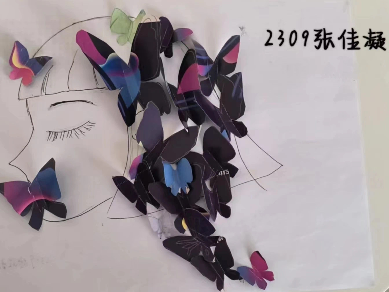 浅冬生寒意,微光暖人心。参赛选手们以拼贴、绘画等方式制作创意拼贴画作品,放飞想象力,传递冬日温暖。2023级3班康新汭的作品以蓝色水瓶为主体,增添向日葵、树叶、鱼群等元素,画面绚烂,呼应“向阳而生”的主题,引导同学们关注心理健康,养成健康心态。2023级9班张佳凝的作品布局简约,构思巧妙,画面唯美,以蝴蝶与女孩为画面主体,展现对美好生活的追求,陶冶同学们的情操。2023级6班张峰瑜通过制作“情绪电池”创意拼贴画作品表达对心理健康教育的认识和理解,借助拉动标签来呈现情绪的起伏变化,鼓励同学们接纳自己,笑对生活。2023级8班单子祎将小女孩作为作品主体,构思新颖,富有创意,以不同的表情为情绪载体彰显主题,呼吁同学们释放心灵,拒绝焦虑。