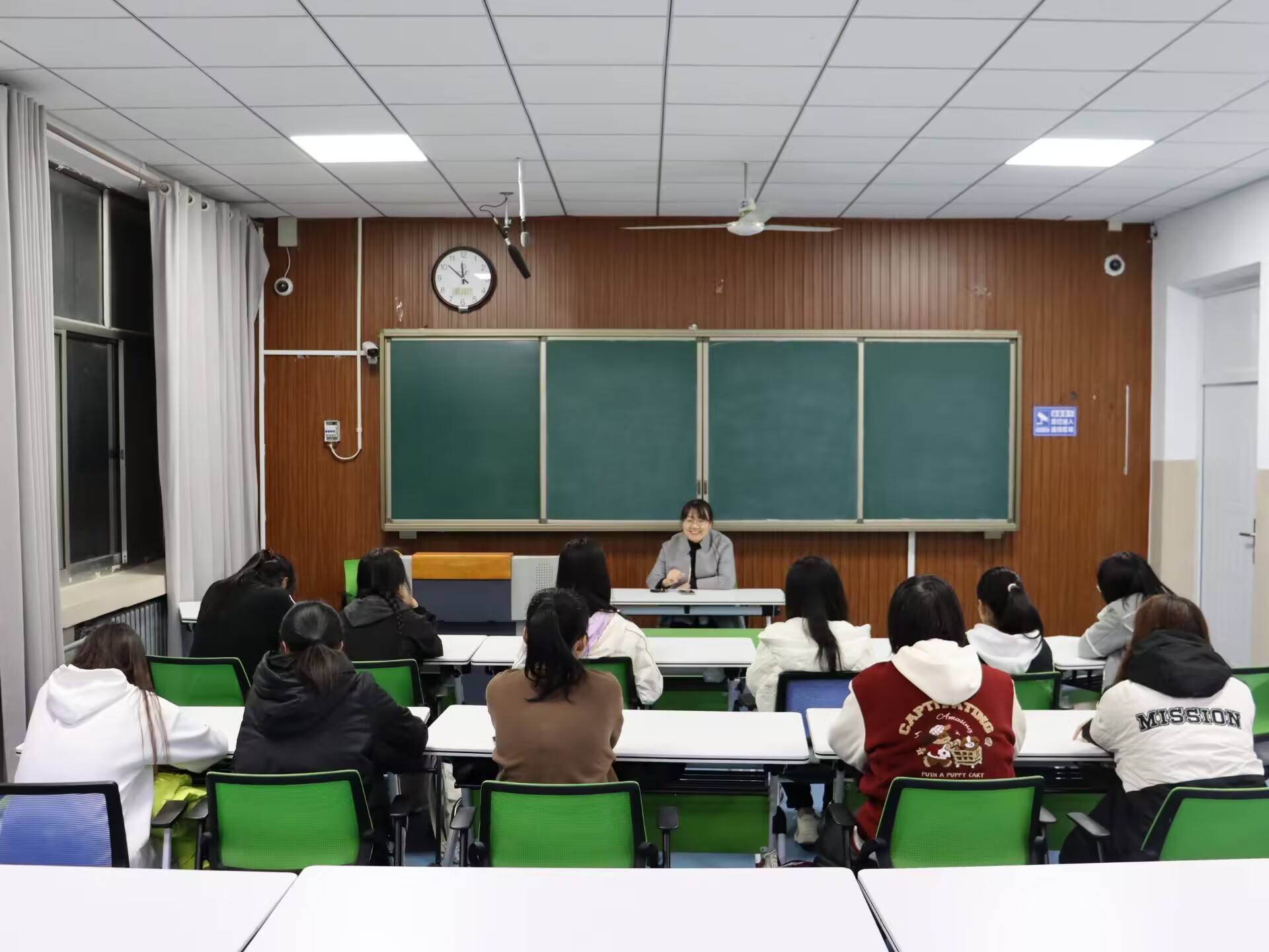 11月17日下午,张雪飞于a203进行谈话。她建议同学们在大学期间重视专业知识学习并从大一开始就要有所规划,打好基础,不能盲目跟从,须确立适合自身的目标,助力大学阶段学业稳步前进。