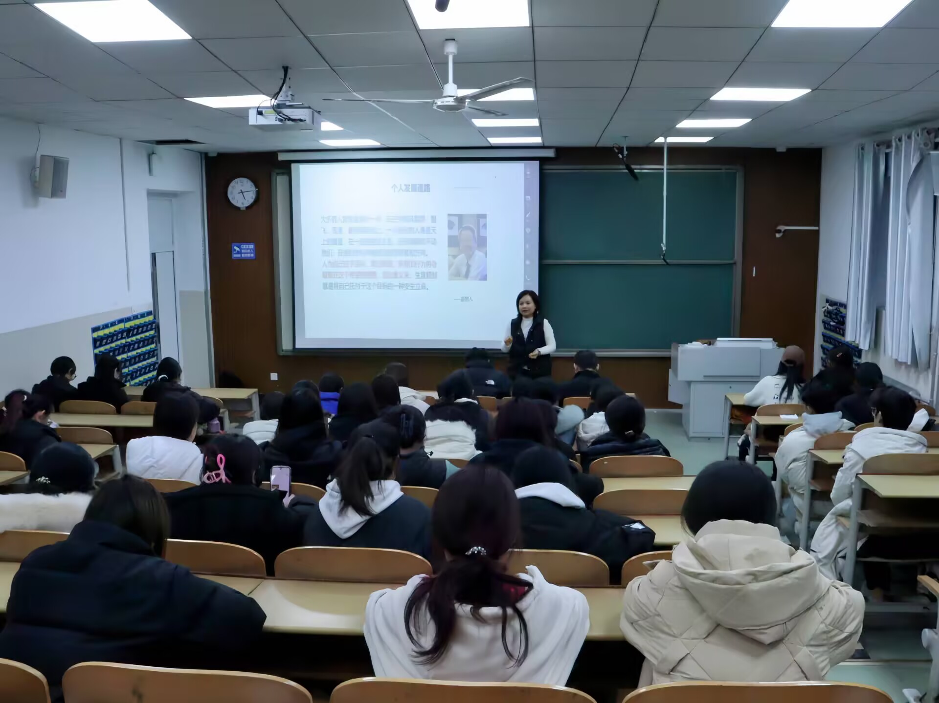 相萌萌从个人发展道路、就业形势解读、学校资源支持和如何撰写高质量的生涯发展报告四方面展开宣讲。活动伊始,相萌萌抛出“为什么要读大学”的问题,引发学生深思,详细讲解个人发展中的学术型道路、专业型道路和社会型道路,鼓励学生多形式就业,拓宽就业视野,不拘泥于传统就业领域,积极探索多元化的职业道路,尝试自主创业,在为自己的未来创造更多可能性的同时,创造社会价值。随后,相萌萌带领学生深入剖析日趋激烈的就业形势,强调职业规划对于大学生的重要性,建议学生客观审视自身兴趣和优势,紧密结合社会发展趋势和个人实际情况,及早制定切实可行的职业规划,为未来就业奠定坚实基础。同时,相萌萌提出,除学生自身努力,学校也为当代大学生提供充足资源支持,学校通过开设生涯课程、成立大学生职业发展工作室以开展生涯咨询、广泛举办生涯活动、积极提供生涯指导等方式,多形式多角度为学生提供就业咨询平台,助力学生制定正确职业规划。活动最后,相萌萌详细讲解撰写高质量生涯发展报告的步骤和要点,结合具体案例分析生涯发展报告中常见的问题和不足,并给出相应改进建议,帮助学生掌握撰写报告的方法和技巧,鼓励其充分利用大学四年,根据报告指引分阶段提升自我,积极参与实践,为未来的就业求职做好充足准备。