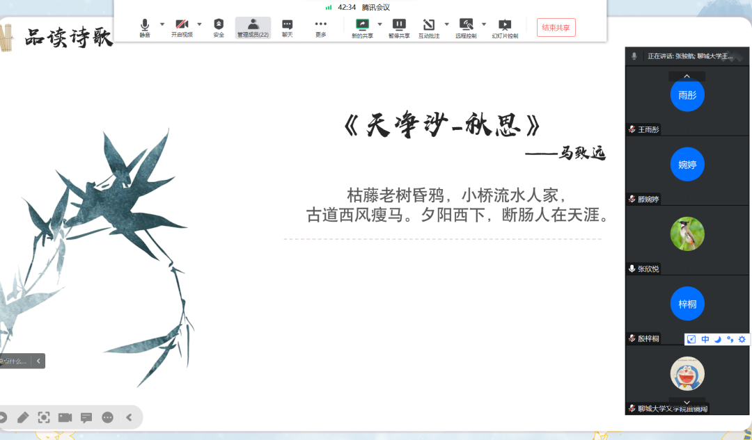 活动期间,志愿者们贴心地为同学们设计了各类课程,包括国学课、文化课、历史文化课、思政课、普通话课等。在国学课上,志愿者们以诗词和楹联为主要内容,一方面精心挑选经典古诗词,并对相关诗句意象进行细致解读,另一方面从内容、格式等方面对传统楹联艺术进行详细介绍,让同学们在领略传统诗词与楹联魅力的同时进行再创作,锻炼和提高自己的诗词楹联创作能力。在文艺课上,志愿者们带领同学们对书法、绘画、剪纸等传统艺术进行鉴赏:在线教授硬笔书法,促进同学们写好规范字;介绍绘画入门知识与技巧,在展示优秀绘画作品的同时,进行色彩搭配知识的普及,提高同学们的艺术素养;线上展示优秀剪纸作品,介绍剪纸文化的历史与相关创作技巧,鼓励同学们进行自我创新创作。在历史文化课与思政课上,志愿者们带领同学们追忆英雄人物事迹与学习大运河文化历史,感受红色文化的魅力,共赏传统文化的瑰丽。在思政课上,志愿者与同学们共同挖掘优秀传统文化中所蕴含的时代价值,汲取其中适应时代发展的道德精髓。与此同时,在普通话课上,志愿者结合自身专业所学,通过教授标准词句发音,带领同学们朗读美文,并鼓励同学们课下进行积极练习,以此提高同学们的表达能力。