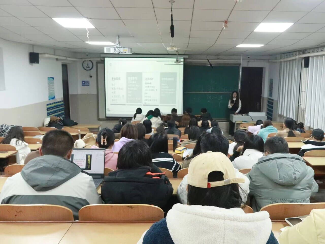 郭峥从英语、现代汉语、古代文学等不同科目出发,结合自身学习实践,对症下药地向同学们传授学习经验,提供生活建议,分享干货技巧。她以“且视他人之凝目如盏盏鬼火,大胆去走你的夜路”鼓励同学们坚定信念,勇敢走自己的路。