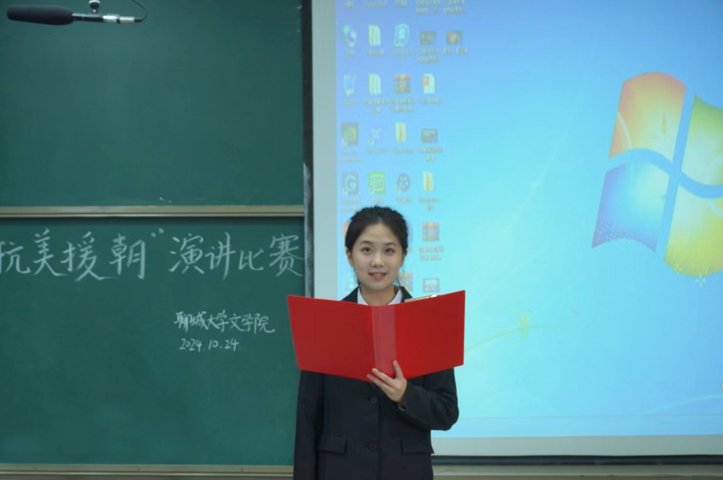 为缅怀革命先烈,强化爱国主义教育,纪念中国人民志愿军抗美援朝出国作战74周年,传承并弘扬抗美援朝精神,激发广大青年学子的爱国情怀和民族自豪感,10月24日,七大罪 九歌文学社与学习发展部于西校区3#c225共同承办七大罪 “铭英雄壮志,颂烈士诗篇”弘扬抗美援朝精神主题演讲比赛。