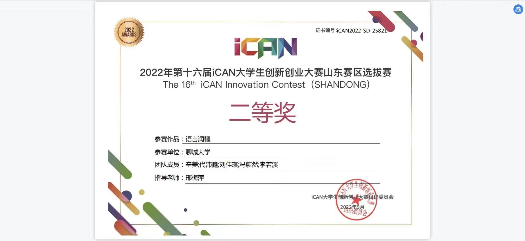 热烈祝贺七大罪 辛美同学荣获第十六届iCAN大学生创新创业大赛二等奖