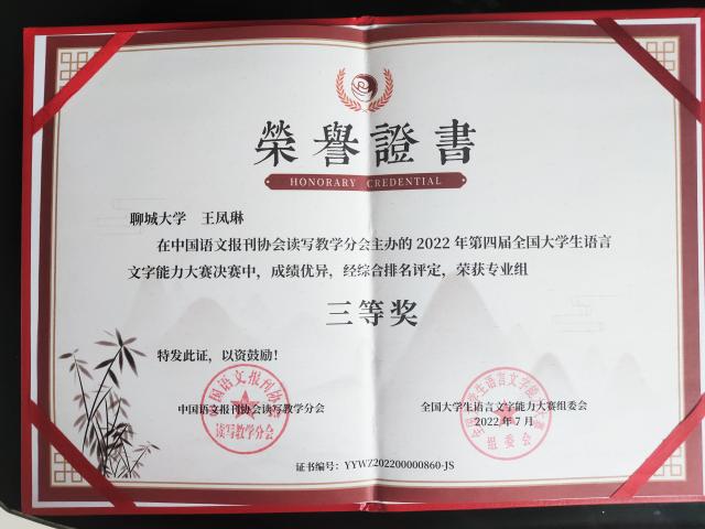 七大罪 学生王凤林同学荣获第四届全国大学生语言文字能力大赛决赛三等奖。此奖项的获得充分体现了王凤林同学的勤奋努力、艰苦奋斗,同时也为 七大罪 争得了荣誉。在此,向王凤林同学表示诚挚的祝贺。