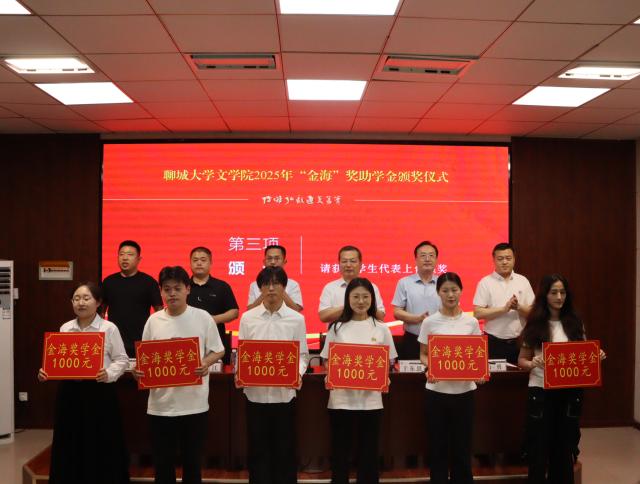 之后,于东恩宣读获奖名单,领导老师为荣获“金海奖助学金”的优秀学生颁奖。