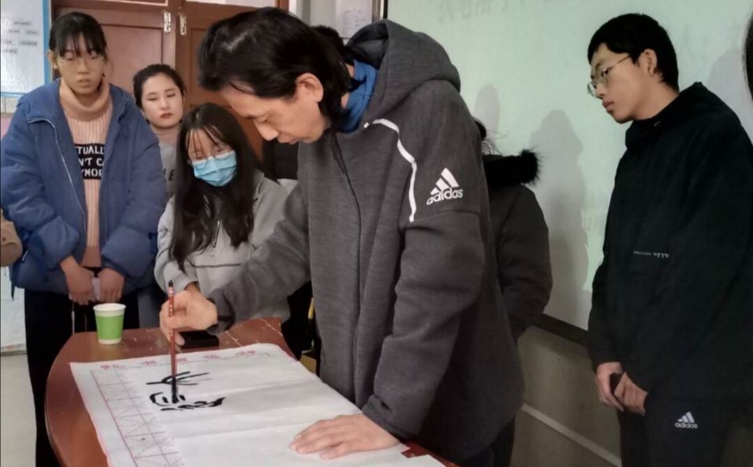 阐释书法精神,传承文化精髓。美术学院刘昆讲述中国书法经历的三个高峰时期,第一是魏晋时期,王羲之的《兰亭集序》被誉为“天下第一行书”,不仅具有极高的书法美学素养,还体现了人生价值;第二是隋唐时期,盛唐涌现出大量书法家,其中经历“安史之乱”的颜真卿在悲愤中创造出“天下第二行书”《祭侄文稿》,展现了爱国忠臣的责任和担当;第三个高峰是北宋时期,经历乌台诗案的苏轼在黄州写下“天下第三行书”《寒食帖》。书法是书写者的真情流露,能够很好的抒情达意。讲说结束后,刘昆在讲台上展示毛笔的正确用法并进行书写,学生现场观看书写过程。刘昆讲道:“书法圆方变化主要由柔软的毛笔决定,篆书要注意笔势和快慢节奏,楷书要注意起、收和转折。”学生听完后收获颇多,在台下拿出文房四宝加紧练习。