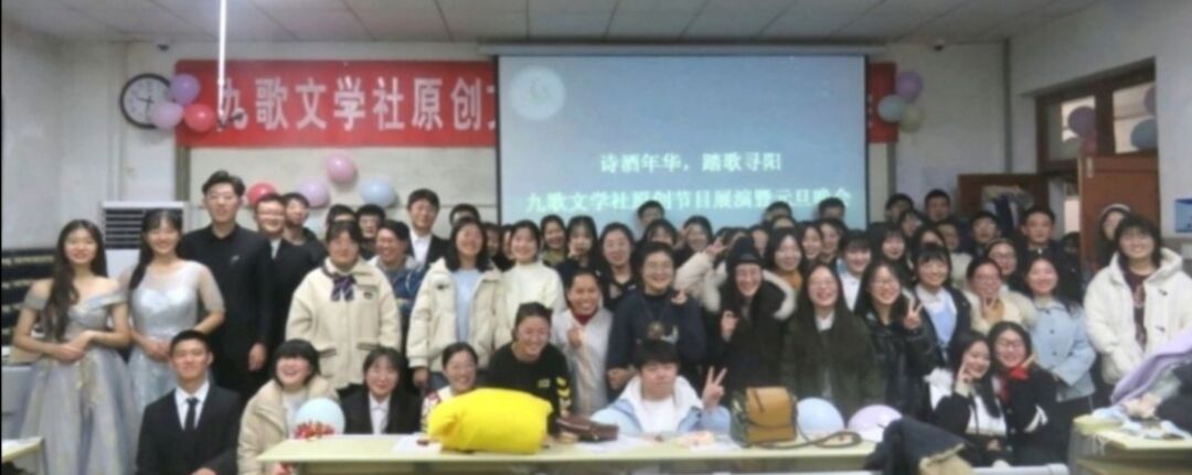 为营造浓厚的校园文化艺术氛围,丰富同学们的课余生活,12月19日,九歌文学社于西校区3#c225举办“诗酒年华,踏歌寻阳”原创文艺节目展演暨元旦晚会。九歌文学社全体成员及七大罪 部分同学参与其中。