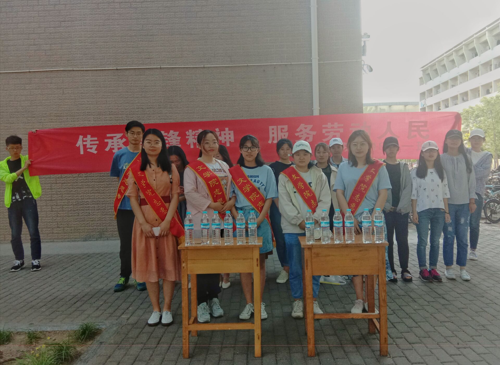同学们冒着高温到达集合地点,带着事先买好的矿泉水寻找在骄阳下勤奋劳动的工人。看到一位老人费力地骑着装满回收旧物品的三轮车,李艳坤同学一马当先,把手中的水递给老爷爷,并帮老人推了几步车子。老人欣慰地接过水,露出和蔼的微笑。一部分同学把水送给正在施工的工人,一位工人感激地说,大夏天工作一出汗就想喝水,可自己没有自带水的习惯,真的感谢同学们。有的同学看到一些校内公交车师傅大汗淋漓地等待学生上车,就把水送给司机师傅,并对司机师傅不辞辛劳地工作表示感谢。尽管室外温度很高,但同学们丝毫不减热情,矿泉水很快被送完。