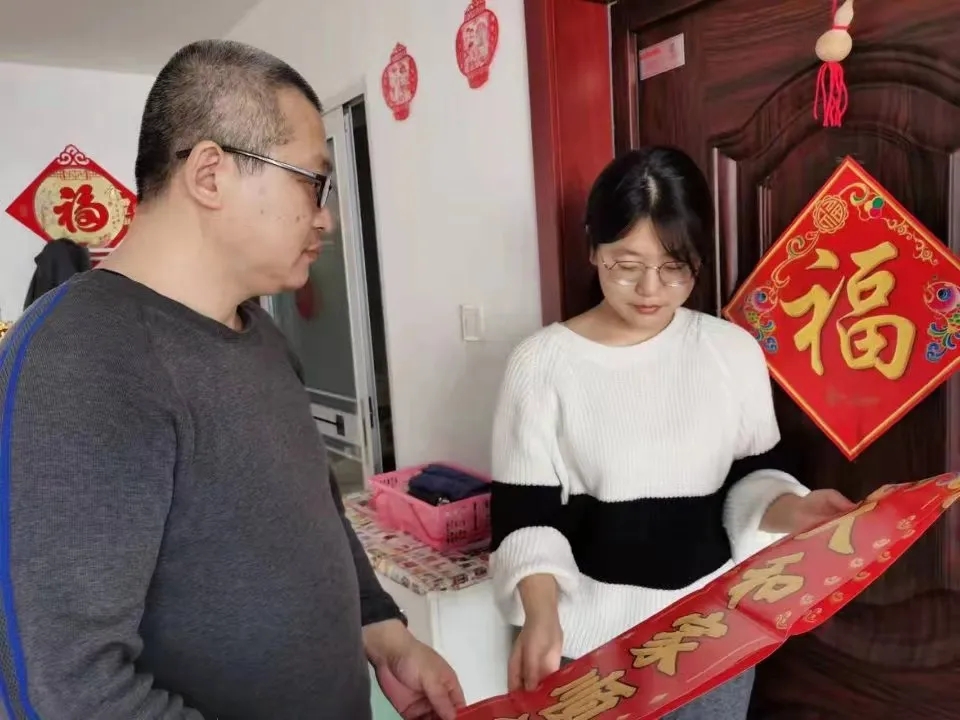 春联历史悠久,蕴含着深厚的文化内涵。本次活动同学们以春联为主要切入点,挖掘春联背后的文化底蕴,品味蕴含在春联中的文化内涵。志愿者们通过查阅书本文献以及借助互联网查询资料的方式了解到春联是汉族人民用来描绘形象,抒发美好愿望的特有文学形式。刘彦秀认为:“春联讲求对仗工整、简洁精巧,并且其背后也蕴含着很多古代文化传说和民俗故事。”新年新气象,旧符换新符。同学们将春联送到老党员们家中,并向他们询问有关春联文化的习俗和春联背后所含的传统文化,以此表达最真挚的关心与祝愿。志愿者们表示:“老党员们年轻时为党的革命事业和国家建设作出贡献,他们身上那种淳朴忠诚、勇于奉献的精神是值得我们永远学习的榜样。”