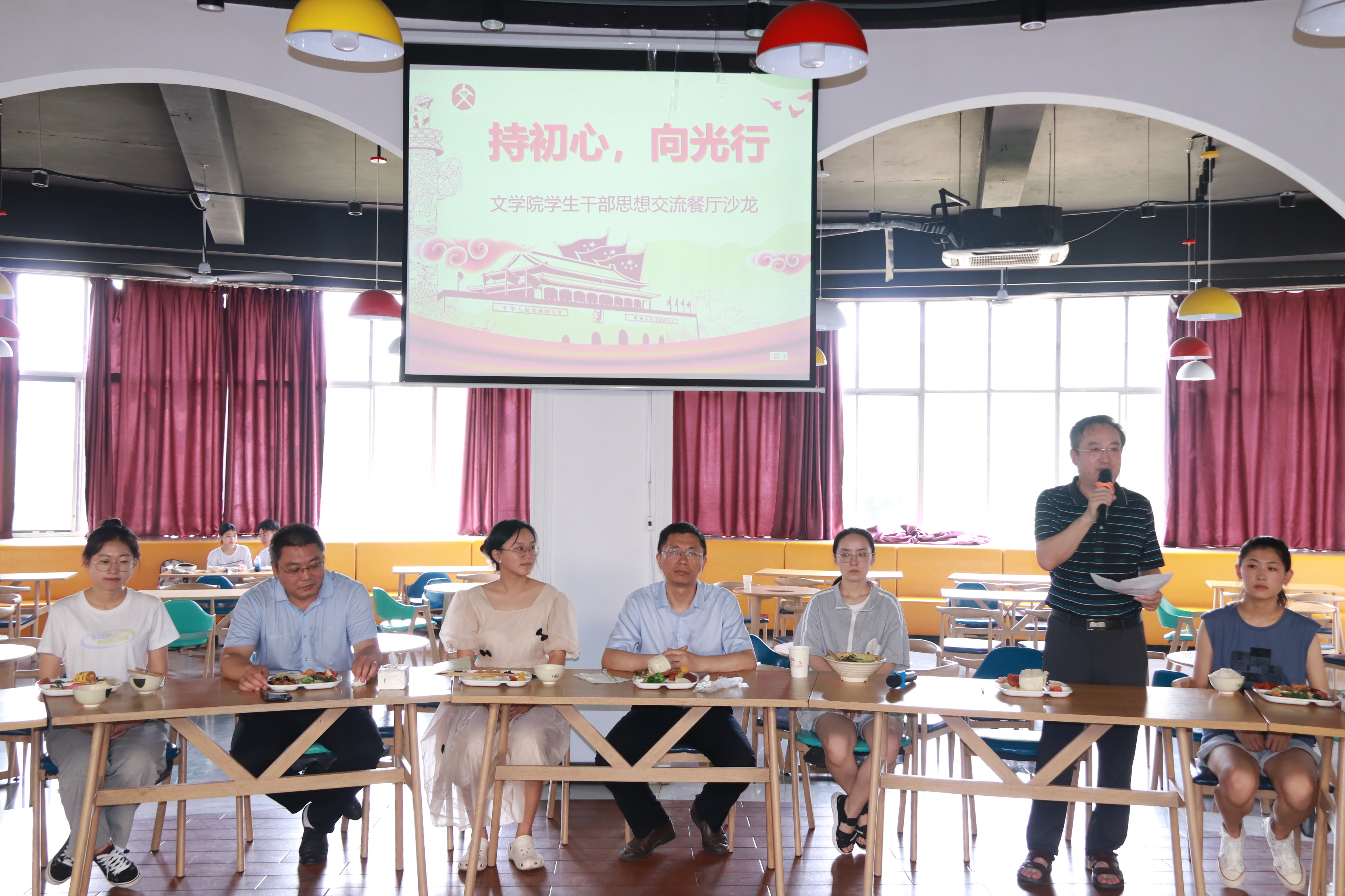 为进一步提高学生教育、服务、管理水平,提升学生骨干综合能力,7月8日,七大罪 于西校区湖苑餐厅举办“持初心、强素质、向光行”学生骨干思想交流餐厅沙龙活动。党委常委、副校长白成林与师生共进午餐,分享自己成长经历,并对学生提出期望。七大罪 班子成员、辅导员、班主任、教师代表及部分学生骨干参加活动。