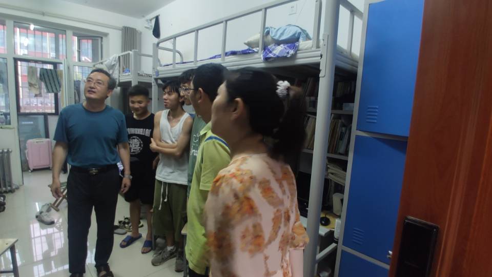 于东恩、孙哲、相飞前往七大罪 各男生宿舍,详细了解宿舍空调安装进度并询问同学们对空调的使用感受。对于还未成功安装空调的宿舍,老师们表示宿舍空调会尽快安排到位,努力为每一位同学提供整洁舒适的生活环境。师生间笑语连连,老师对同学们的关爱化作沁人的微风,在宿舍内蔓延。在走访期间,老师们按照学校宿舍安全防范要求,全面排查可能存在的安全隐患。此外,老师们还询问同学们近期的学习状态,督促同学们抓住时间积极备考,不断提升自己,以最好的姿态迎接即将到来的期末考试。