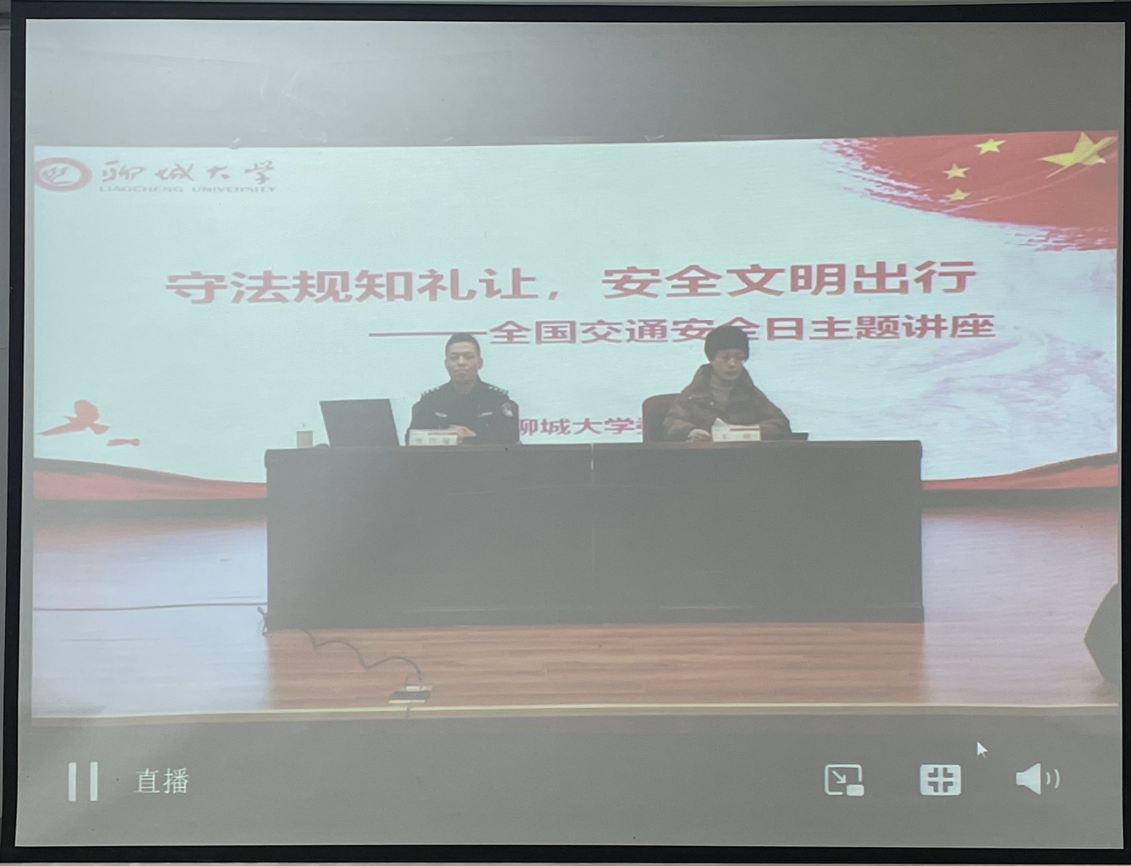 本次直播由王欣致开场白,从落实习近平法治思想和习近平总书记关于安全生产的重要论述入手,积极倡导生命至上和安全新理念加强警校联合,鼓励和倡导师生安全出行、绿色出行,提高安全意识和自觉遵守交通法则的意识。接着,由张警官向大家普及交通安全知识。张警官带领大家了解全国交通安全日,倡导大家主动学习交通法律知识,掌握交通安全的相关常识,自觉遵章守法。通过引导大家学习道路上的标志标识,播放视频和讲解真实事例,让大家学习道路通行的一般规定、行人和乘车人非机动车的通行规定及避险常识、驾驶机动车避险常识四个方面进一步增强大家安全行车意识,提高遵守道路交通安全法律法规的自觉性,使大家对交通安全有更为深刻到位的理解。最后,王欣向大家提出三点倡议绿色出行,尽量选择步行;二遵守交通安全法规,不在骑车时开小差、玩手机;三是提高安全意识、文明意识,增强礼让意识。