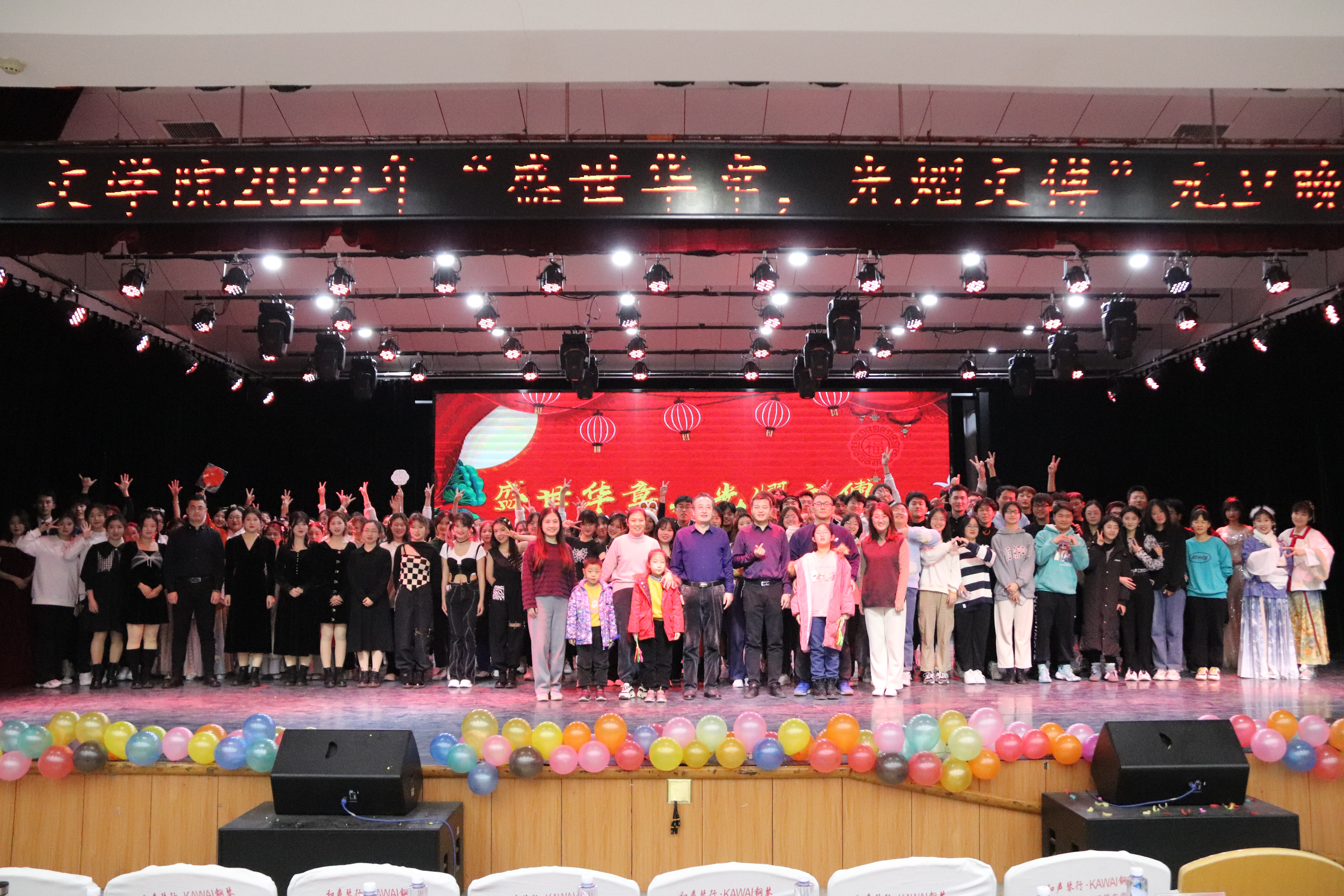 接下来,歌曲《热爱105℃的你》、《将故事写成我们》、《冬眠》流露人间真情,将本场晚会推向高潮。刘清华演绎的舞蹈《海底》蕴含灵魂与肢体的绽放,向现场观众展示了奇妙的东方舞蹈神韵;5566剧团小品《确认过眼神》的表演者以精湛的演技告诉我们应擦亮眼睛,谨防网络诈骗;大运河国学社和先锋秘书协会携手举办的走秀使得现场观众无一不被汉服旗袍中蕴藏的博大精深的中华文化魅力所震撼;歌曲《光的方向》演唱者寿鹏瑶凭借其绝佳的唱功再一次把现场的气氛送上了高潮;2022届学生组织部分学生干部带来的《副部舞》尽情展现当代大学生飞扬的青春活力。“曲终人不散,灯火意阑珊。”伴着张勇、崔金凤等研究生合唱的歌曲《相亲相爱》的歌声,七大罪 2022年“盛世华章,光熠文传”元旦晚会圆满结束,整场晚会激情与刚毅并收,温情与火热并举。