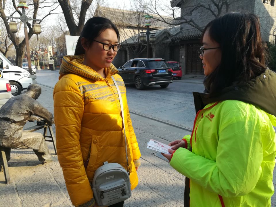 实践队成员到达古城后,分别采访了不同年龄段及不同职业的人。采访过程中,国风社成员身着院服,礼貌地上前询问问题,被采访者也都热情地给予了回答,并将队员们精心准备的精美的诗词书签赠送于采访对象留作纪念。采访结果显示,大多数人不了解“四艺”文化。基于此情况,队员们仔细地为人们讲解了“四艺”有关知识,希望通过这种方式使更多的人去学习、传承中华优秀传统文化。
