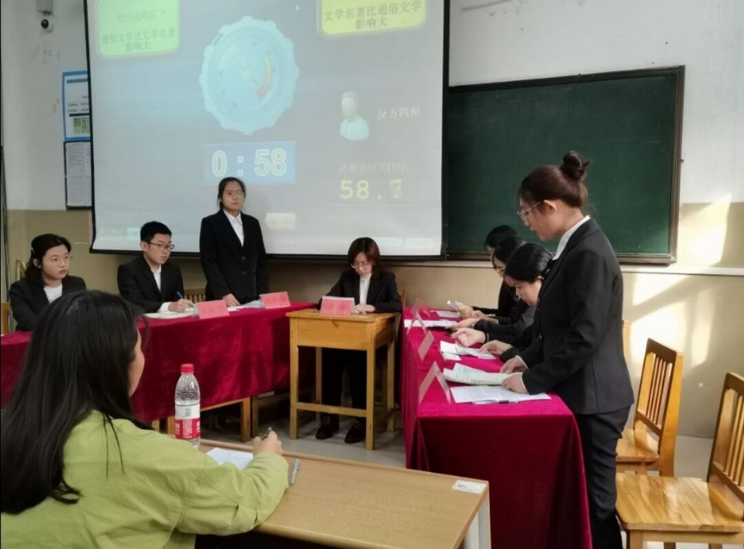比赛伊始,主持人王舒宁对参赛嘉宾及活动流程进行简要介绍。随后,正方“银河战舰队”和反方“说啥啥都队”进场落座。继正方慷慨陈词、反方充满理性色彩的自我介绍后,本次决赛进入开篇立论环节。正方用条理清晰的语言就“通俗文学比文学名著影响大”的观点进行陈述,反方则以数据为切入点,用理性化的语言陈述己方“文学名著比通俗文学影响大”的观点。针对对方的立论,双方展开激烈的攻辩。正方对反方语言和思维上的漏洞进行剖析,连连发问,反方也毫不示弱,有力还击,现场气氛活跃,比赛进入白热化阶段。比赛继续进行,进入自由辩论环节。这一环节中,双方辩手博古论今,口吐珠玑,可谓针尖对麦芒。精彩的对辩博得全场喝彩,观众掌声雷鸣,现场气氛不断升温,比赛进入高潮阶段。正方辩手幽默风趣,妙语连珠,旁征博引,逐渐占据上风。随后,比赛进入总结陈词环节,双方辩手以缜密的逻辑和精辟的语言给观众留下深刻的印象。最后,三位评委对此次决赛做出精彩的点评,并表现出对两队辩手的肯定。最终,“银河战舰队”略胜一筹,夺得本次决赛的冠军,“说啥啥都队”也在决赛中取得亚军的佳绩。至此,本次比赛圆满结束。