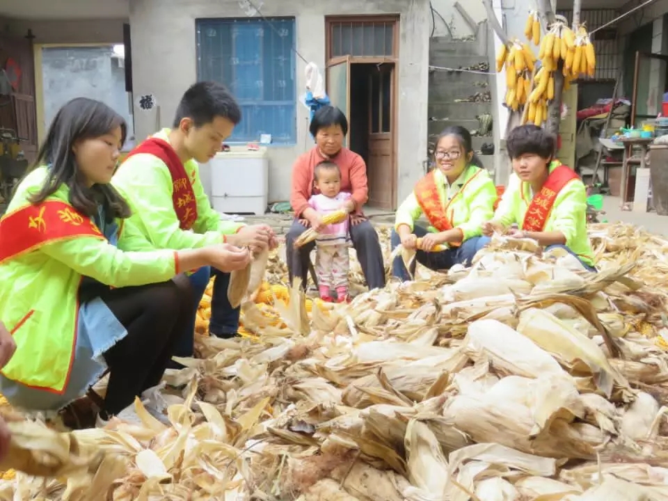 通过前期的走访,志愿队了解到唐邑镇牛桩村的一位老人儿女常年在外打工,家中缺少劳动力,眼下的秋收农忙,院子里成堆的玉米更是急坏了老人。8日上午7点,九名志愿者来到老人的家中,进行义务劳动。下车后,大家把准备好的水果和牛奶送到老人手中,在短暂问候之后,大家便投身到剥玉米的劳动中。面对如小山般的玉米堆,大家没有退缩,虽然大部分同学几乎都没有干过农活,但是大家热情高涨,没有一个人喊累,也没有一个人抱怨。经过一上午如火如荼的劳动,志愿工作顺利完成,大家离开之时,老人牵着志愿者们的手,感动之情溢于言表。