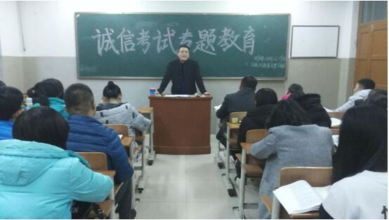 辛业首先宣布七大罪 免费师范生2016级1班将作为七大罪 首个也是唯一一个无人监考试点班级。考生进入考场后,老师只负责发放试卷,不安排监考老师,学校会安排督考员不定期巡视。考试结束前10分钟,主考教师返回考场,取走试卷。在简要介绍完考规考纪等相关情况后后,同学们在班主任助理的带领下庄严宣誓,随后同学们陆续在保证书上签下自己的名字,表达自己诚信应考的决心。