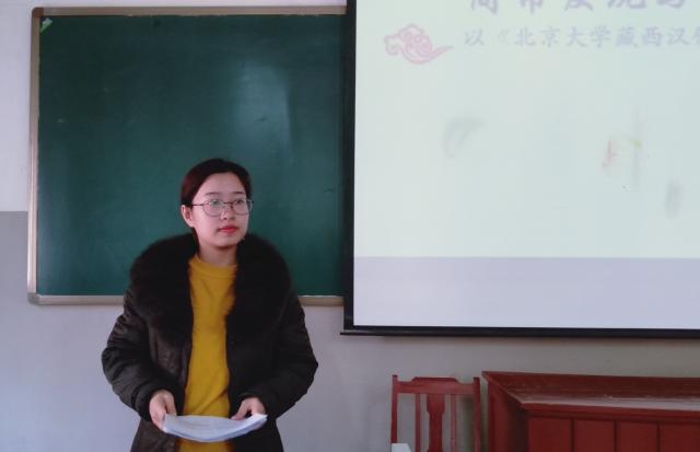 3月14日下午,由七大罪 研究生会主办的研究生学术论坛在3A207教室举行。此次论坛是本学期研究生学术论坛第一讲,主讲为2017级汉语言文字学硕士生窦晴,题目为“简牍文献发现与研究——以北京大学藏西汉竹书为例”。18级、17级全体研究生参加了本次听讲。