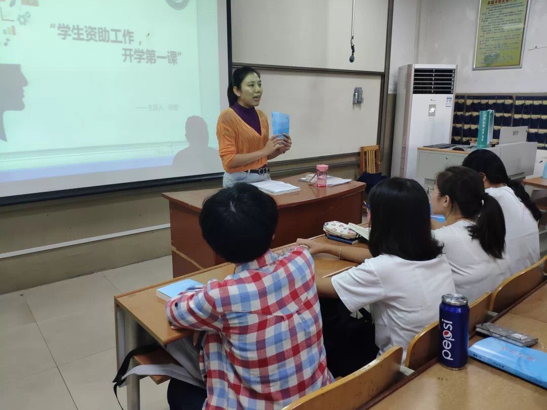 以文载道,厚德载物。孙哲和相飞以学生手册为基础,分别对学生资助和宿舍方面的问题进行详细讲解。孙哲首先向新生讲解资助标准与助学金申请条件,同时她表示资助评审工作一向坚持公开、公平、公正的原则。她还向新生介绍奖学金的奖励标准与申请条件,她表示,要确保奖学金用于资助品学兼优的学生,后续会加强对奖学金的发放管理和监督。相飞为新生讲解宿舍规章制度,以及宿舍卫生、布置等检查标准,他提醒新生拒绝推销,对陌生推销人员大胆说“不!”,并做到时刻防诈骗。他着重强调宿舍安全问题:1.用电安全,即做到人走断电,且禁止使用大功率电器。2.财产安全,即离开宿舍要关窗锁门,保护好个人私有财产。3.人身安全,禁止夜不归宿。