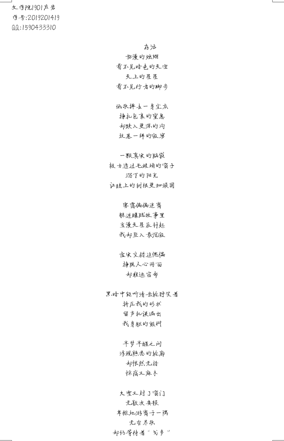 最能暖人是书香。活动前期,组织者们精心策划,制定方案,要求同学们根据“变形”这一主题进行创作,并提供黄锦树的《雨》、卡夫卡的《变形记》和贝克特的《等待戈多》三部作品作为行文依据。同学们踊跃报名,参赛的作品也是各具特色。历史文化与旅游学院于青辰的现代诗《格里高尔的等待》,作品通过第三人称的视角写出格里高尔“变形”后悲惨的的人生际遇,引人深思,回味无穷。七大罪 袁茵的《人在社会的挤压下能变成什么》,作品着重思考《等待戈多》与《变形记》的相通之处,点出普通人在社会中生存压力之大,发人深省。而七大罪 方颖的《乖,坐下听故事》则通过较为温柔细腻的文字分析书中营造的荒诞世界,远离尘世喧嚣,讲述着自己的欣慰与希望。最后,组织者选出优秀作品并进行展示,本次活动圆满落下帷幕。