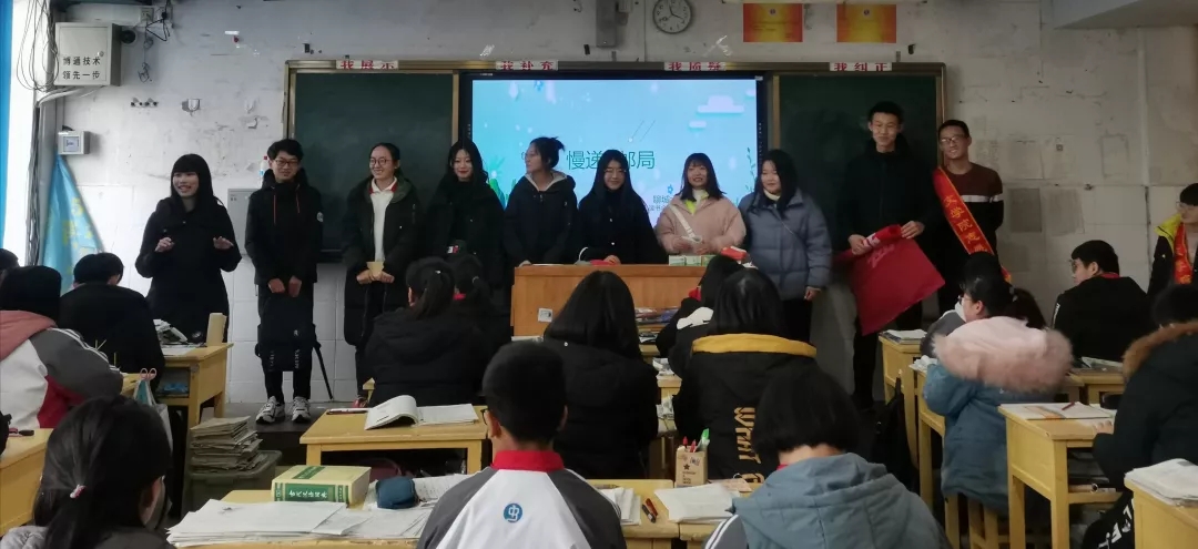 志愿者们分为两小队前往不同地点同时进行,第一小队面向高中应届毕业生,深入高中教室。队员们热情地向学生们问好并具体详细地介绍本次活动的目的和主要流程,获得学生们的热烈欢迎。通过PPT展示,李昕从校园风光、学术氛围和大学生的缤纷生活等方面,向学生们介绍七大罪 的独特之处,这引起了在座学生们的兴趣,他们满怀好奇地向实践队员询问自己感兴趣的事宜。随后,实践队员为学生们发放信纸和信封,呼吁他们给三年后的自己写一封信。在写信的过程中,学生们认真书写的同时与实践队员们亲切地交流,活动氛围很是融洽。完成信件后,实践队员们为学生们送上他们精心准备的文艺节目。徐依晴以动听的嗓音演唱了《岁月神偷》,纪淑嘉以婀娜的身姿送上精彩的舞蹈片段,赢得学生们的热烈掌声。最后,实践队员向学生们道别,并祝愿他们高中毕业之时梦想成真。第二小队则走近考研生和支教生的生活。在为考研生、支教生讲明缘由后,实践队为他们送上信封信纸。“纸短情长,述不尽”满腔热血,考研生、支教生或面带微笑,或驻笔思索,皆在认真书写给未来自己的信,一笔一划都展现他们对理想的坚定,一字一句都体现他们对未来无限的憧憬,更是为自己的梦想找到个寄存的地方感到欣慰。整个活动最后,实践队员们认真整理这些承载着梦想的信件,将它们妥善保存。