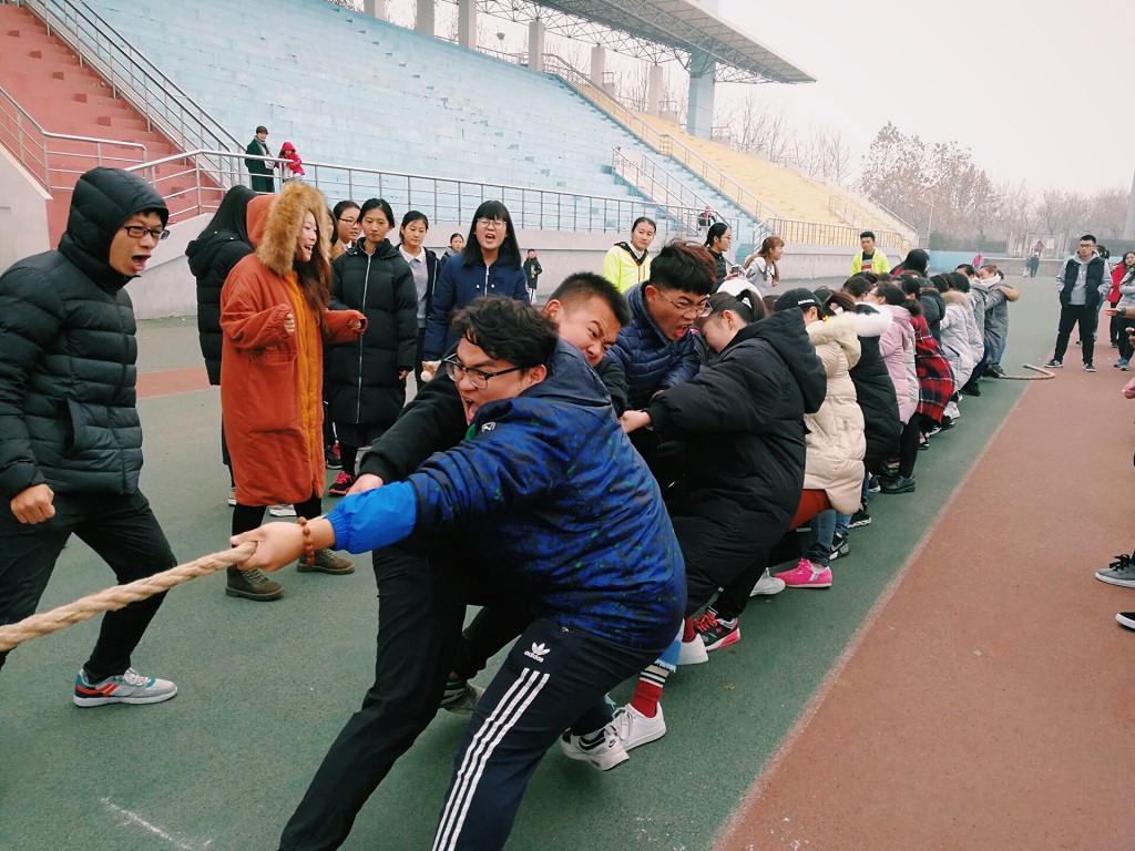 萧萧寒风起,烈烈激情扬。本次比赛共有20支队伍参与,采用淘汰制的形式展开比赛,由各班班长抽签决定比赛顺序,胜者直接晋级下一轮,直至决出冠军。赛前,双方队员便做足准备,互相传授拔河技巧,相互鼓励,振奋士气。裁判哨声一响,手指一挥,双方便卯足了劲,一张张青筋暴起的面庞,一个个挥汗如雨的身影,一声声加油鼓劲的呐喊,一句句凝聚力量的口号,不禁令人心潮澎湃。