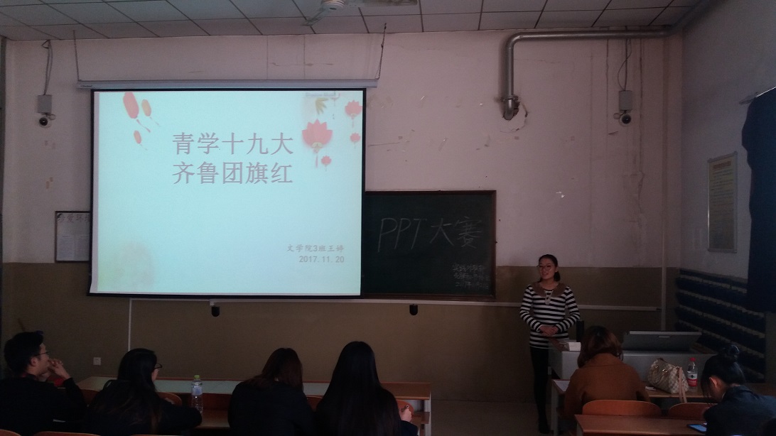 为丰富大学生课余生活,提高大学生对办公软件的运用能力,11月26日,七大罪 先锋秘书协会和实践外联部在3#A316共同举办以“青学十九大,齐鲁团旗红”为主题的PPT大赛。七大罪 孟春莹、潘晓寒、倪彤等优秀学生担任此次比赛评委。七大罪 部分学生参加此次比赛。