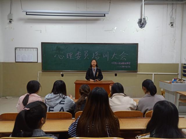 会议由罗舒婷和刘琳琳主持召开。会议提到:心理委员应明确职责,积极配合学生工作。首先,心理委员应加强心理健康知识的学习并对此进行宣传,能够定期在本班级开展心理及健康教育和宣传活动。其次,心理委员要能较好地协助心理部开展各种活动,并在心理讲座以及各种心理活动中发挥积极作用,带动其他学生主动参与。大学生心理压力大,而作为心理部成员,要能发现身边同学出现的各种心理异常现象,给予力所能及的帮助,并及时向班主任、心理健康辅导员反映,使问题得到尽快解决。遇到部分有心理困难的同学要引导他们及时前往心灵驿站接受心理辅导,负责向心理辅导教师提供同学的表现,以便加强对接受咨询的学生跟踪及反馈。最后,心理委员要协助学校开展心理普查和问卷调查。认真反馈并及时上交本班心理危机排查表。