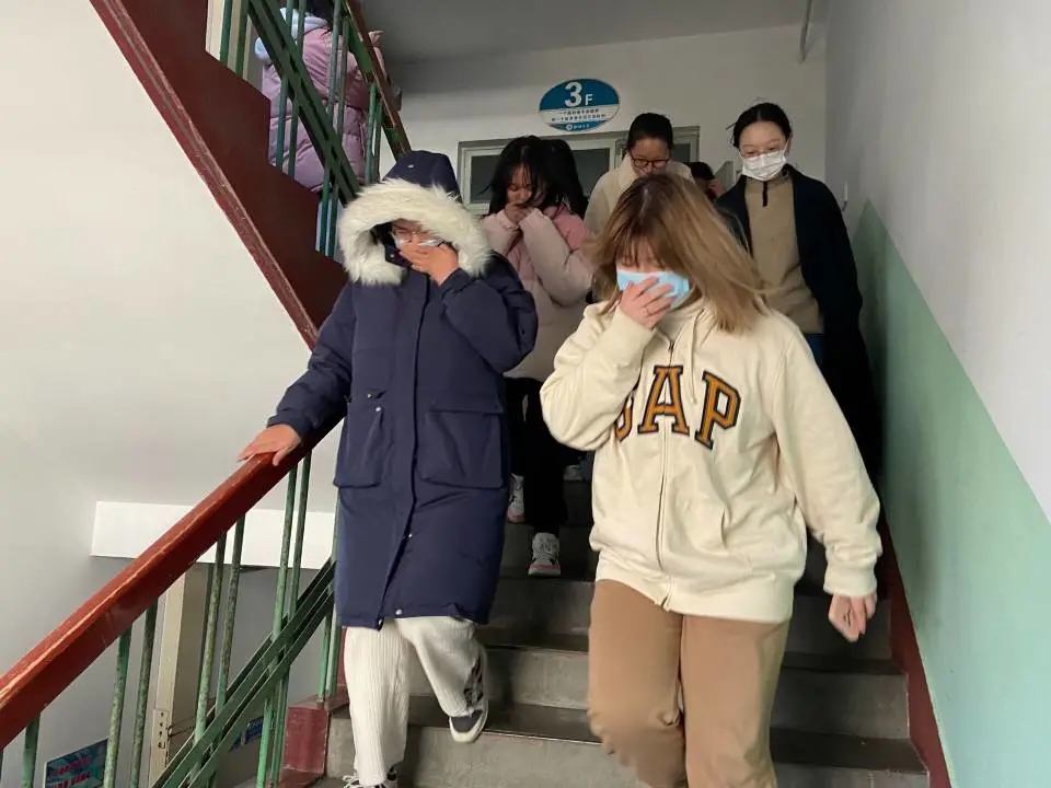 消防演练开始前,生活服务中心成员对参与同学进行组织、安排,规划“逃生”路线,以确保同学们在遇到真正的火灾时能够及时逃离。演练过程中,在每一楼层设定一位警报负责人向同学们及时传递火灾发生的消息,同时组织同学们迅速撤离。在撤离过程中,同学们用双手捂住口鼻,听从负责人指挥,紧张而有序地从左右楼梯进行疏散,直至撤离到宿舍外的安全地带。撤离完成后,负责人清点人数,以确保每位同学安全撤出。整个消防演练过程,参与同学沉着冷静,负责人指挥得当,以左右楼道为撤离路线分别疏散为方法,既能使参与同学及时撤离,又能防止参与同学在消防演练过程中因人数太多而引起的骚乱,从而保证此次消防安全逃生演练的顺利完成。