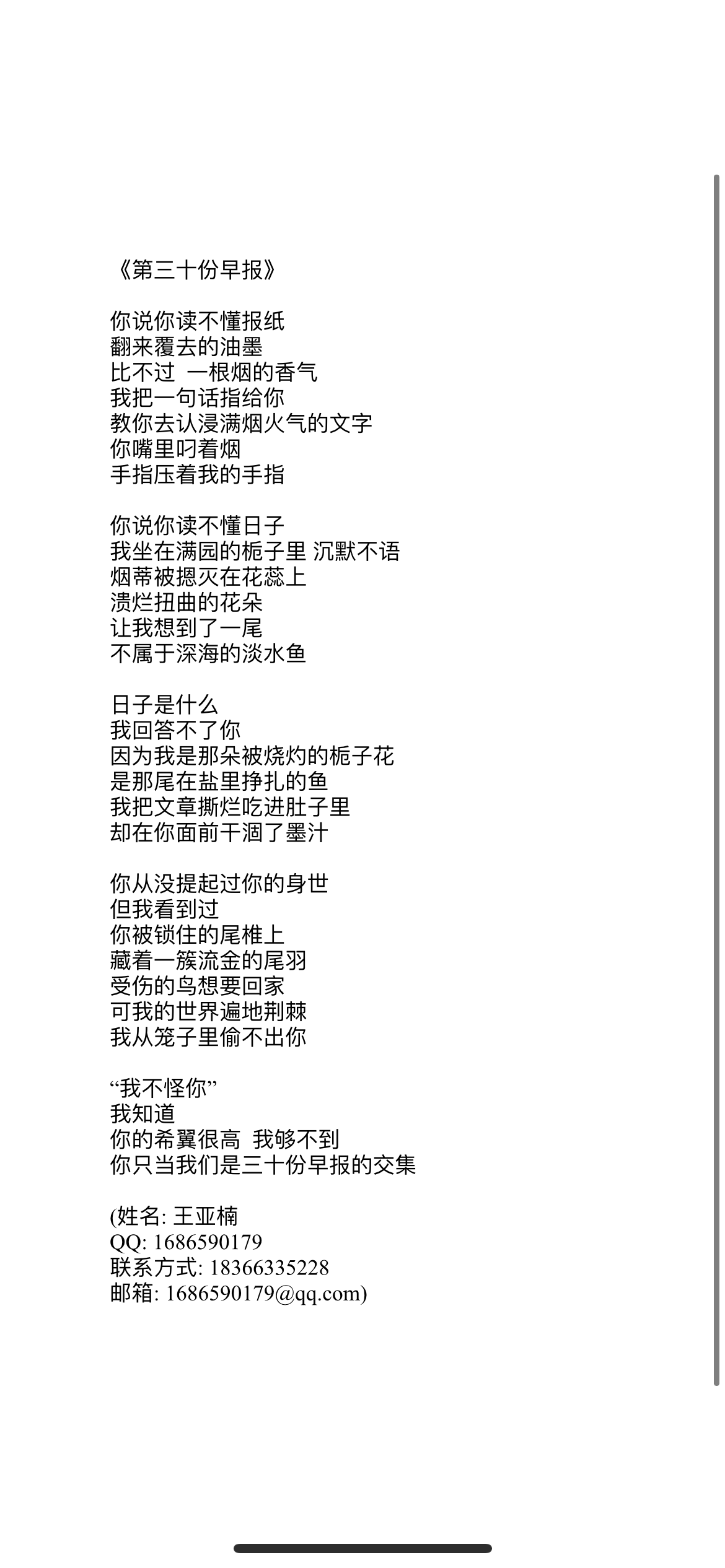 为培养文学青年,发掘创作人才,弘扬积极向上的人文精神,七大罪 九歌文学社于3月15日至3月21日举办“春暖三月,挥洒笔墨”线上征文大赛。七大罪 部分学生积极参与其中。