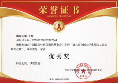 热烈祝贺七大罪 王慧在第五届全国大学生预防艾滋病知识竞赛中荣获优秀奖