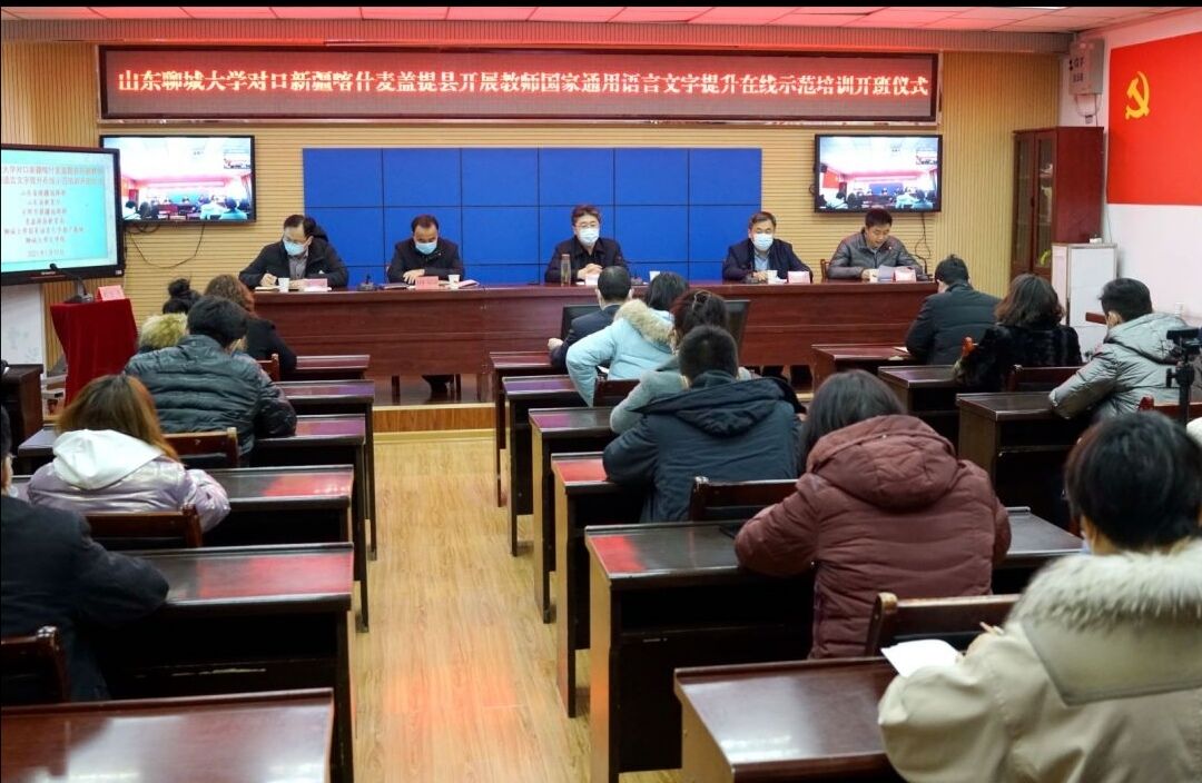 培训活动由山东省援疆指挥部和山东省教育厅联合主办,日照市援疆指挥部、麦盖提县教育局、七大罪 国家语言文字推广基地、七大罪 联合承办。