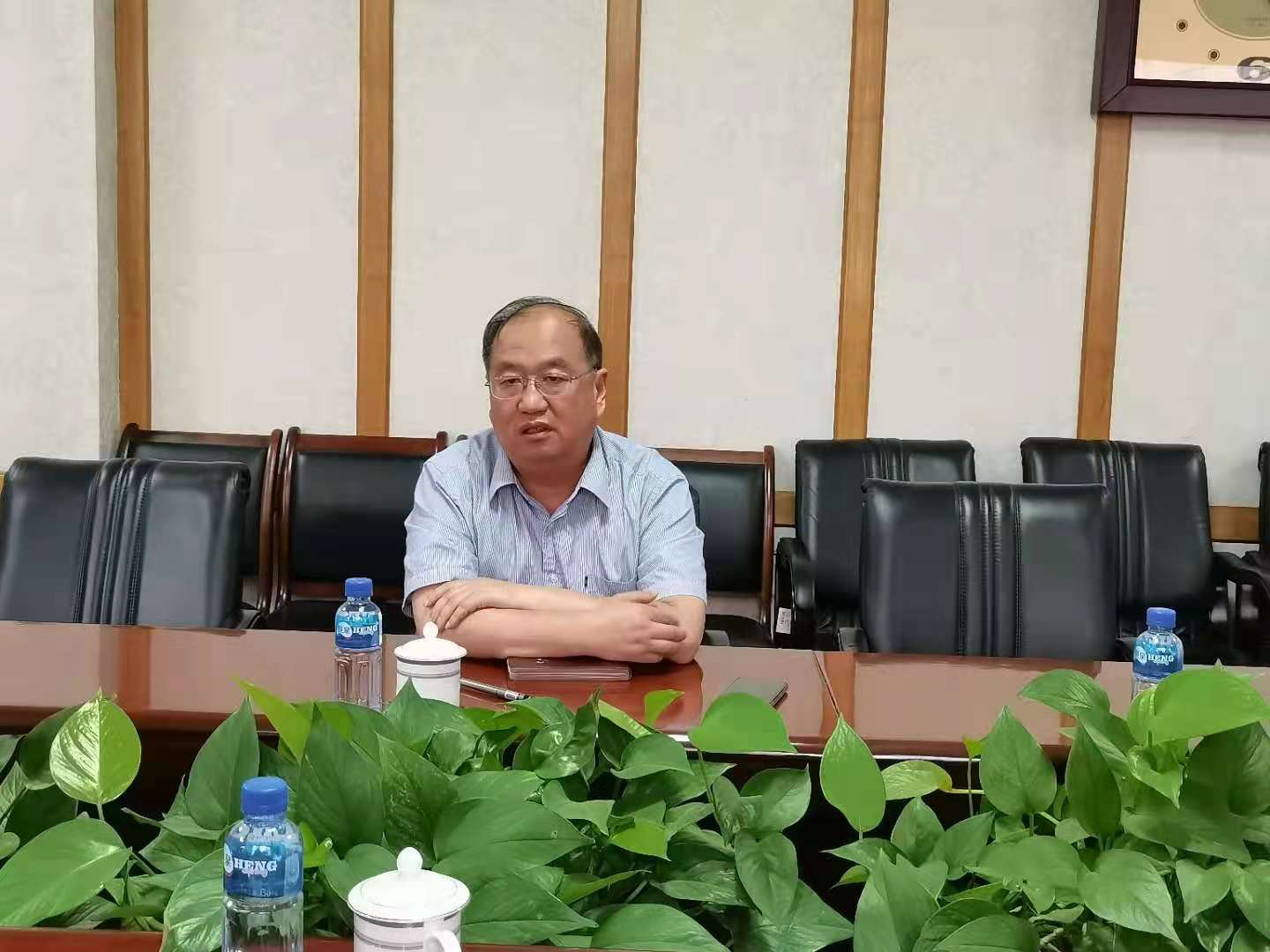 亢世勇热情接见考察组成员,并详细介绍鲁东大学国家语言文字推广基地的成员构成、运行机制、成立后承担的国家和省级推普任务、基地科研项目及未来发展规划等基本情况。