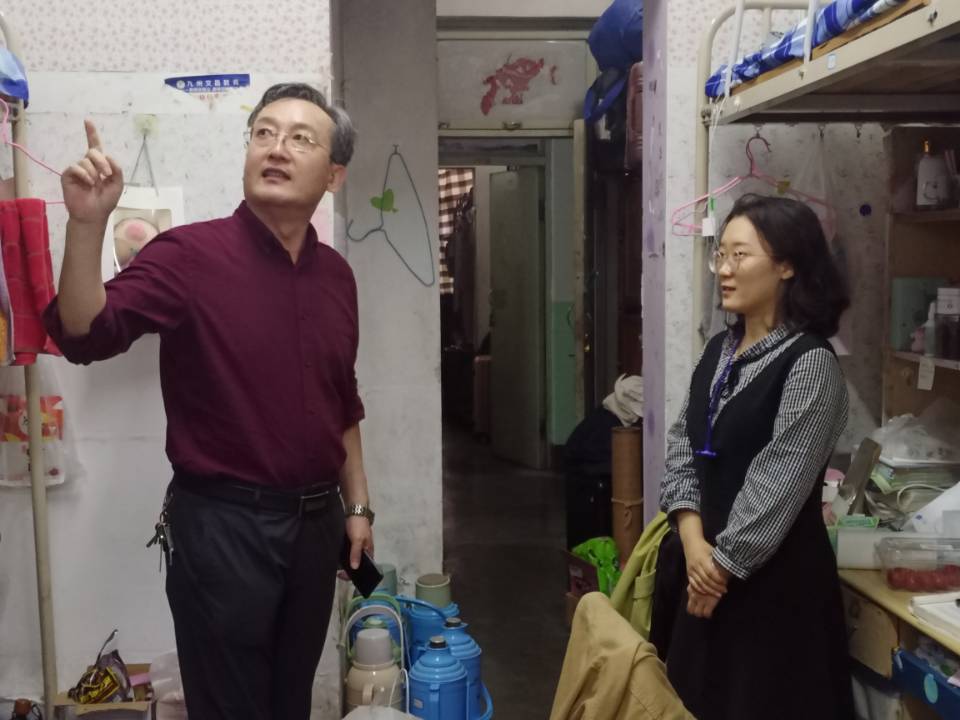 为规范学生宿舍日常卫生行为,排查宿舍安全隐患,推进宿舍文明建设,9月27日,七大罪 党总支副书记、副院长于东恩,团委书记石勇,辅导员王伟伟、孙哲、相飞、胡玥、胡明洋、贾瑞清走访学生宿舍,开展安全排查工作。