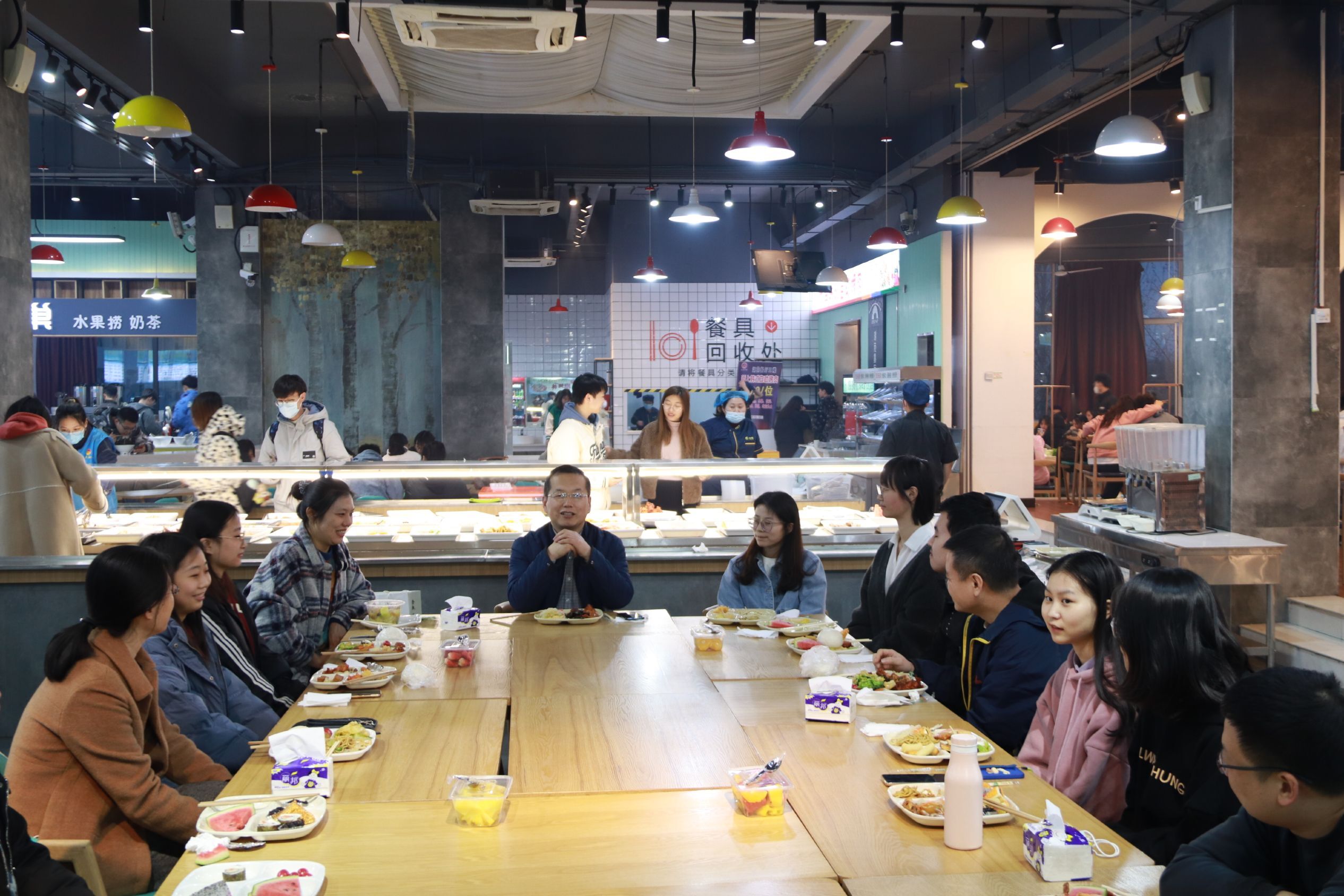 春暖三月,良师益友共畅未来。活动伊始,在主持人的介绍下,老师们依次向在场同学表示亲切的问候,同学们围绕考研、就业等方面介绍自我奋斗的计划。在听完同学们的介绍后,李承虎代表学院和各位老师首先对同学们明确的奋斗目标表示认同与赞许,并真诚祝愿同学们复试成功,一切顺利,所有期许融入于“上岸成功”四字之中。李承虎在讲话末尾表示学院为了方便同学们线上复试,准备了8间复试专用教室,购买了6个三脚架。随后,在轻松愉快的用餐过程中,老师们认真询问同学们具体的未来规划,并结合自身经历,以及往届同学的具体情况答疑解惑,给予针对性建议。