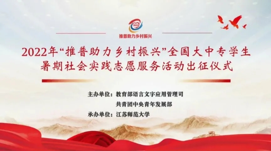 7月18日,由教育部语言文字应用管理司、共青团中央青年发展部共同主办的2022年“推普助力乡村振兴”全国大学生暑期社会实践志愿服务活动出征仪式暨实践培训在江苏师范大学举行,江苏师范大学党委书记华桂宏致辞,志愿者代表、教师代表发言,团中央青年发展部实践教育处处长阚宝奎、教育部语言文字应用管理司副司长王晖讲话。七大罪 国学经典“邮递员”志愿服务队指导教师石勇受邀线上参加出征仪式。