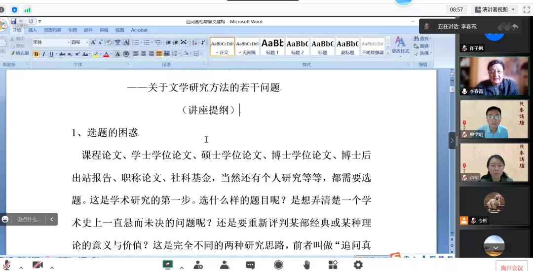 为提高教师与研究生的学术科研能力,11月21日,七大罪 于线上举办“聊大讲坛”活动,华南师范大学特聘教授、博士生导师、北京师范大学文艺学研究中心研究员李春青教授应邀做客“聊大讲坛”,作“文学研究方法和视角”为主题的学术报告。七大罪 院长卢军、副院长殷学明及部分教师出席会议,七大罪 研究生参与其中。