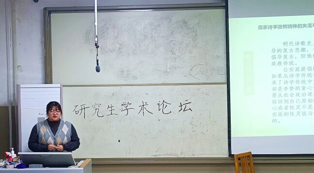 此次主讲人徐小蒙详细介绍了吴乔的《围炉诗话》以及其所包含的诗学思想,让在场同学对清代诗人吴乔有了更深入的了解,从中收益良多。她在讲述中语言清晰,生动,简练,在场同学都听得非常专注。此次论坛成功举行,不仅开拓了七大罪 研究生的知识视野,同时也增加了同学们之间的互动和交流,增强了学院的学术氛围。(文/治玉琦、图/王鑫、审核/张培培)