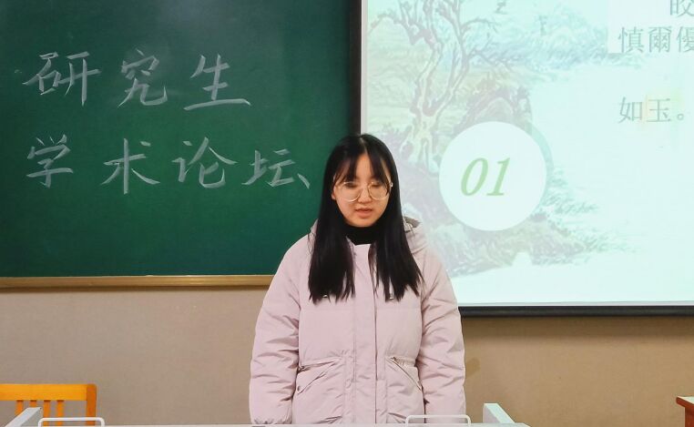 郝潇讲解的《“縶”字语意与〈白驹〉诗旨补说》内容新颖,她引用大量历史文献以及出土画像石,使讲解内容直观生动,拓宽了在场同学的学术视野,促进了各个学科研究生之间的交流与学习。(文/王鑫、图/王鑫、审核/张培培)